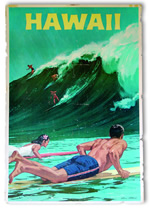 Dans cette exposition l’univers du surf se décline au travers de plus de 400 objets figuratifs allant de la fin du XIXème à celle du XXème siècle : affiches de cinéma ou de tourisme, livres, dessins, bronzes, objets publicitaires, magazines, souvenirs des plages de la côte basque, de Californie ou d’Hawaï. Attention aux amateurs de rouleaux et d’écume, ils n’y trouveront aucune planche de surf, seule l’évocation de la célèbre board habite les lieux pendant un mois. "Ayant toujours trempé dans la brocante, l'art et la pub, il était normal qu'arrivant au pays basque pour et par le surf, je sois très curieux de ce qui avait été réalisé sur ce thème. J'ai donc commencé ma recherche sur tout ce qui figure le surfing", explique Gérard Decoster, commissaire de cette expo rafraîchissante, sur le site Internet de Guéthary.